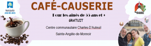 Voici notre deuxième café-causerie de l’année. C’est une belle occasion de se rassembler autour d’un café et d’une collation pour discuter et avoir plus d’informations sur les services offerts aux aînés de notre municipalité.